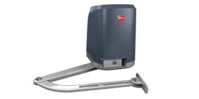 Azami 2 metre genişliğinde ve 200 kg ağırlığındaki kanatlı bahçe kapıları için uygun, mesken tipi kullanıma yönelik mafsallı kollu elektromekanik operatör. Her türlü montaj durumu için ideal olup, sahip olduğu kol sistemi sayesinde büyük boyutlu sütunlar ile ilgili her türlü problemin kolaylıkla çözülebilmesini sağlar. Operatöre tümleşik kumanda santrali, limit siviçleri ve mekanik stoplar.